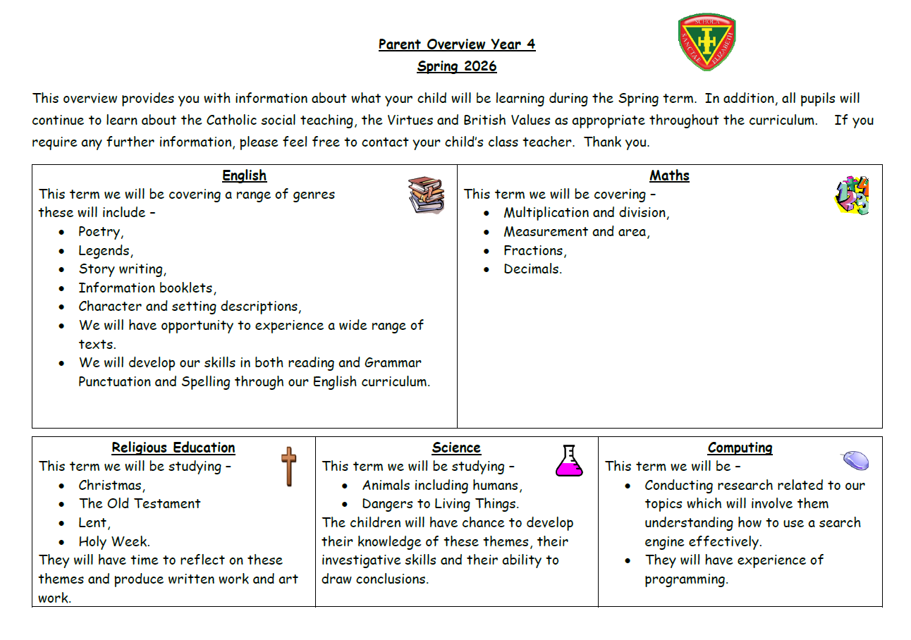 Please see the Our Faith area of the Website for information about your child's Religious Education.