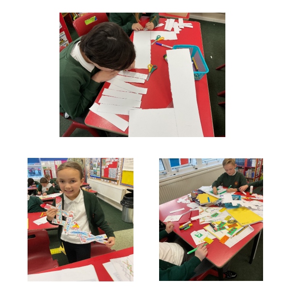 During our D.T. skills lesson we began to create our own scissor mechanisms. We had to use the skills of measuring, drawing lines and cutting strips of card to the same length to create the parts of our scissor mechanisms and then we assembled them.