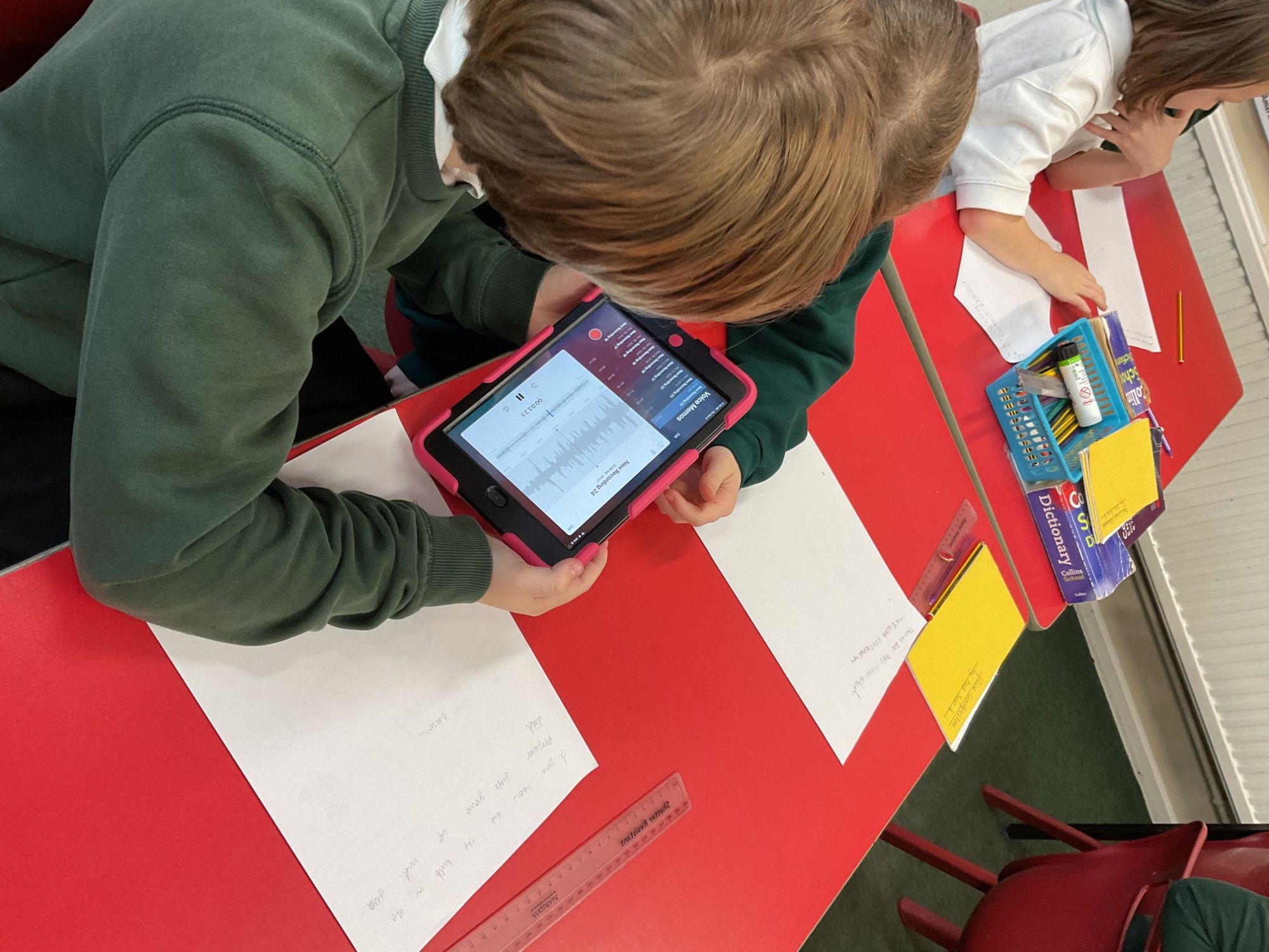 During computing lessons Year 4 learned how to plan their own podcast. They wrote and recorded their audio in pairs in the form of an interview.